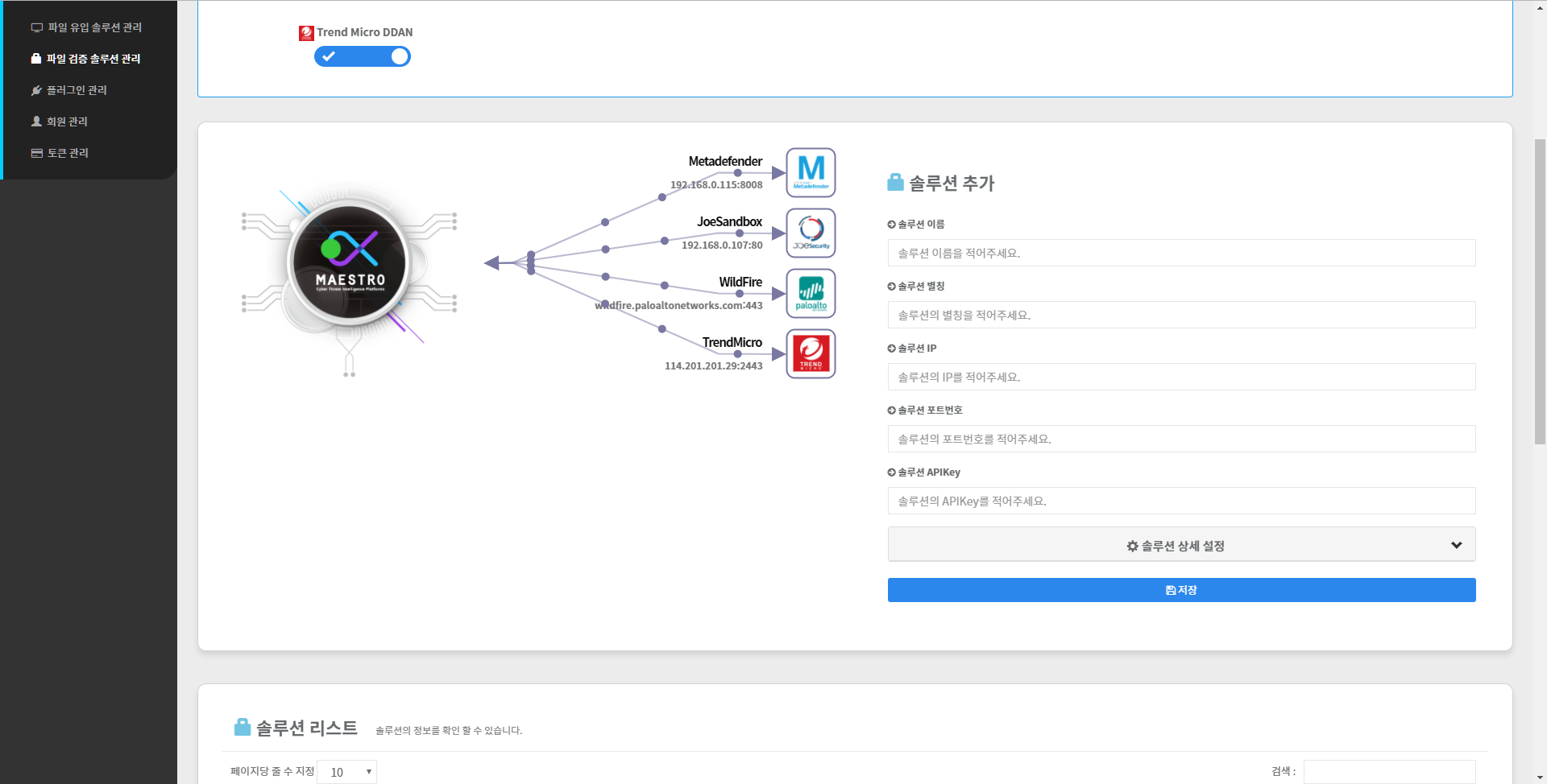 마에스트로 CTIP는 각종 네트워크 보안솔루션들을 하나의 통합 플랫폼으로 구성하여