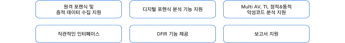 실시간 악성코드 탐지 / 분석 / 차단 및 디지털 포렌식을 하나의 플랫폼에서 수행할 수 있는