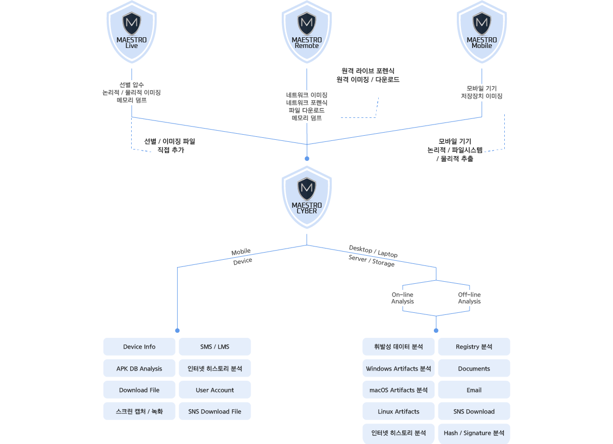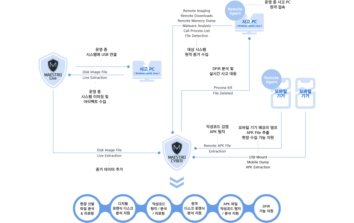 MAESTRO CYBER는 전통적인 디지털 포렌식과 원격 디지털 포렌식을