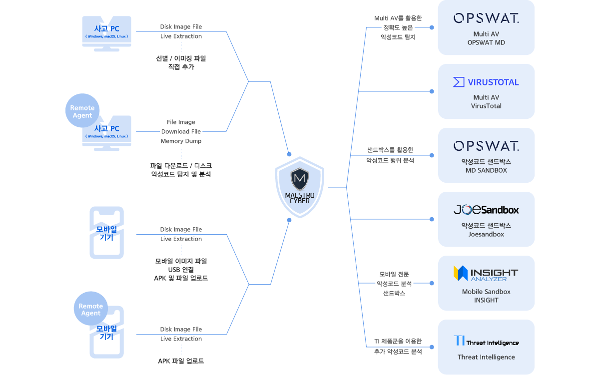 MAESTRO CYBER는 증거 채증, 악성코드 분석, 모바일 포렌식 등 디지털 포렌식
