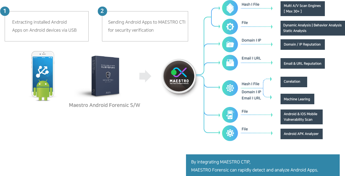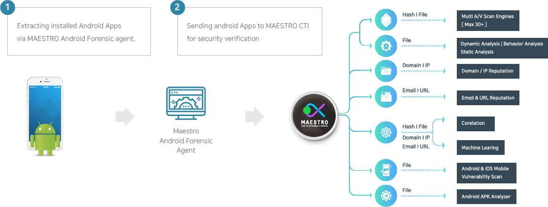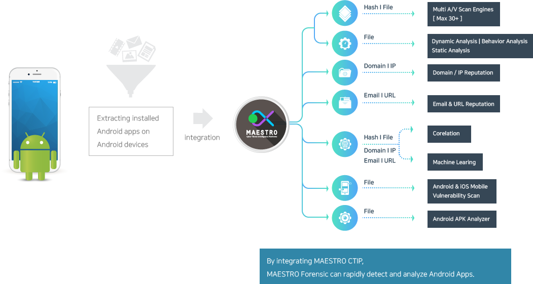 MAESTRO Mobile can rapidly detect and analyze mobile malwares by integrating MAESTRO CTIP.