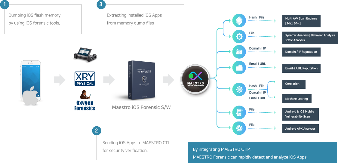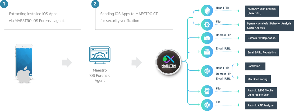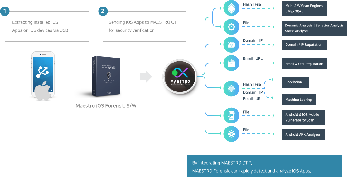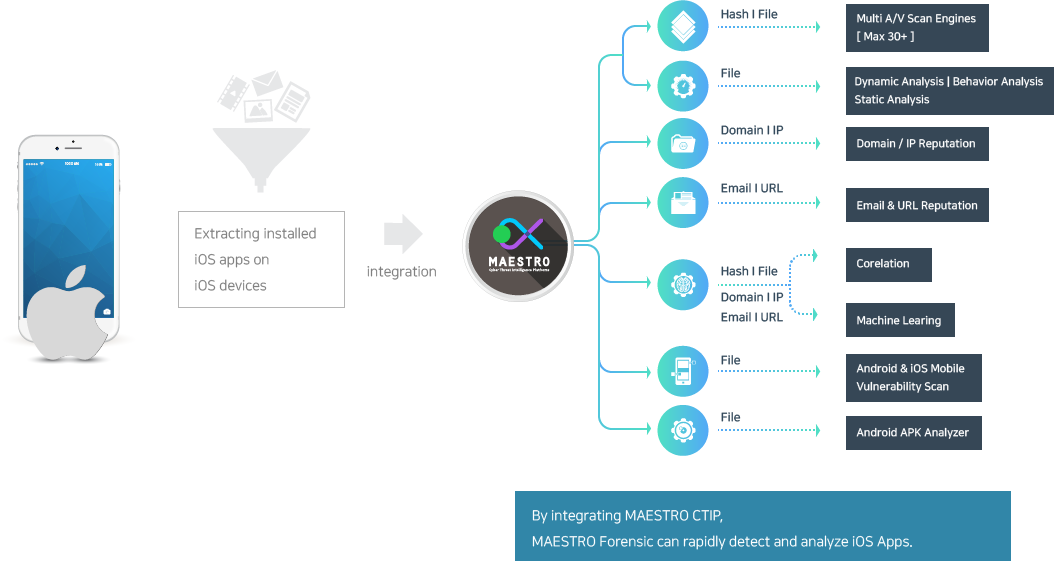 MAESTRO Mobile can rapidly detect and analyze mobile malwares by integrating MAESTRO CTIP.