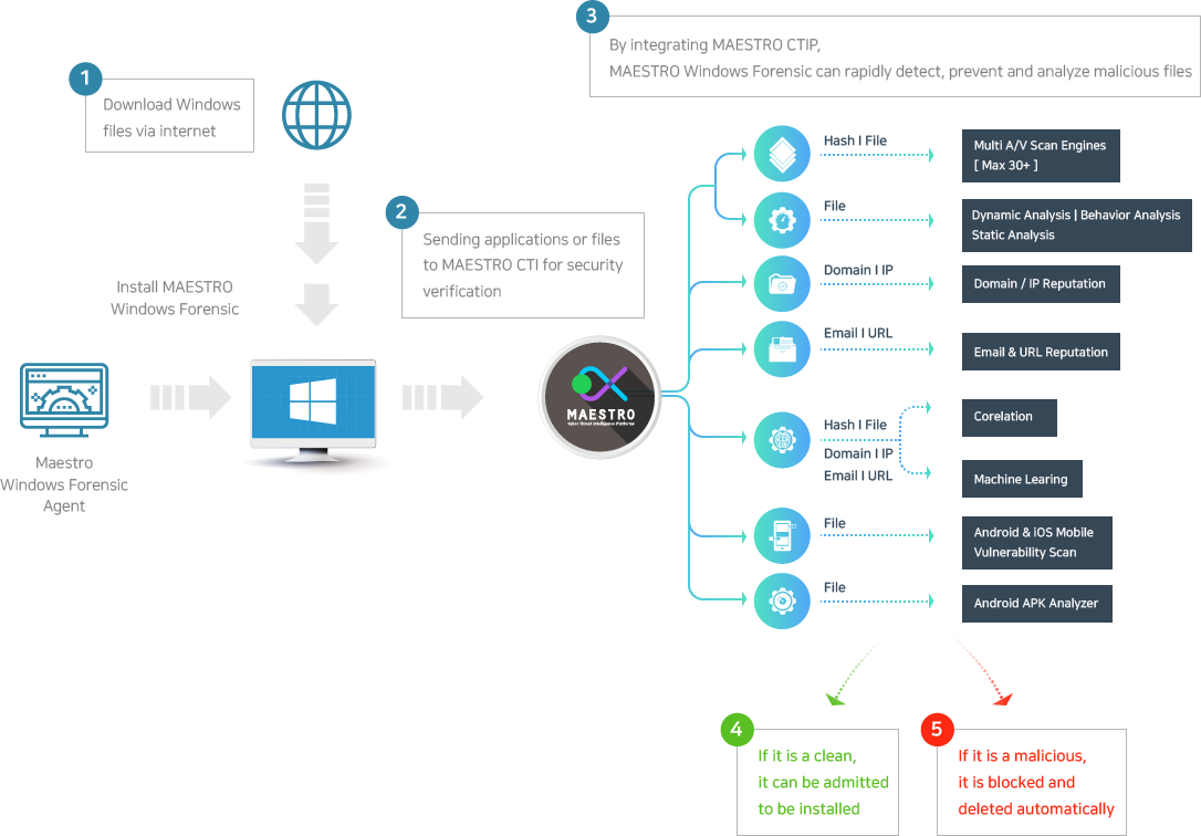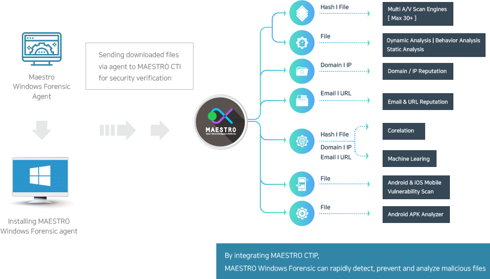 MAESTRO Windows can detect, prevent and analyze Windows malware files in real-time by installing MAESTRO Windows agent